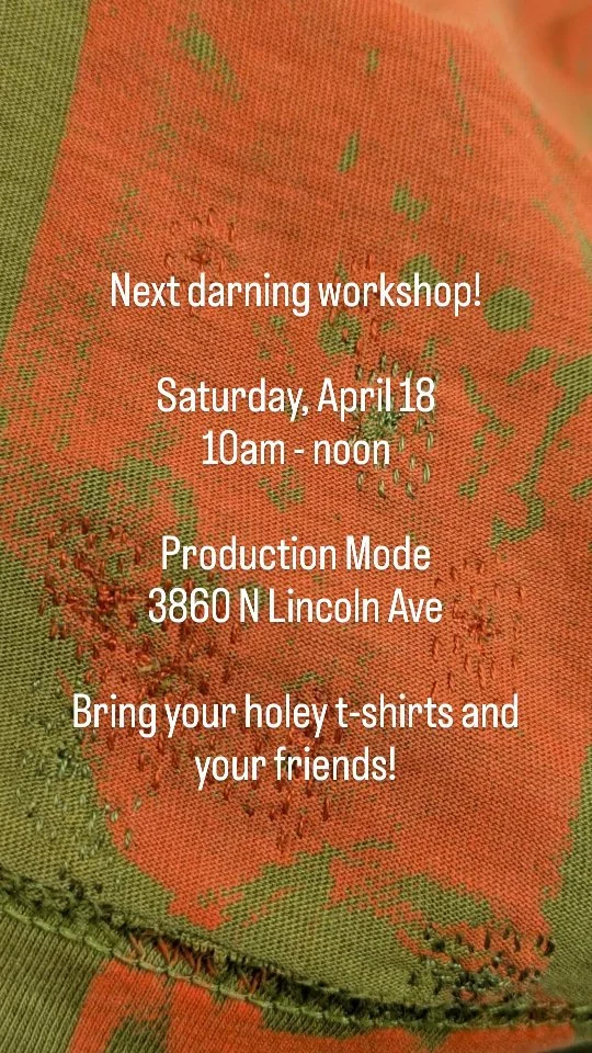 All in-person mending consults happen at Production Mode at 3860 N Lincoln Ave in Chicago, IL.